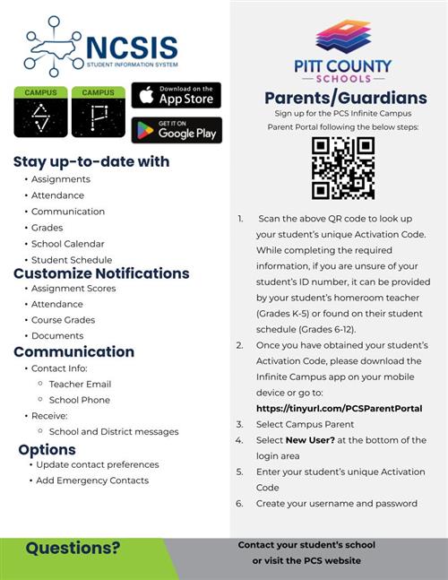 Please check out Pitt County School's Infinite Campus Page for more information.